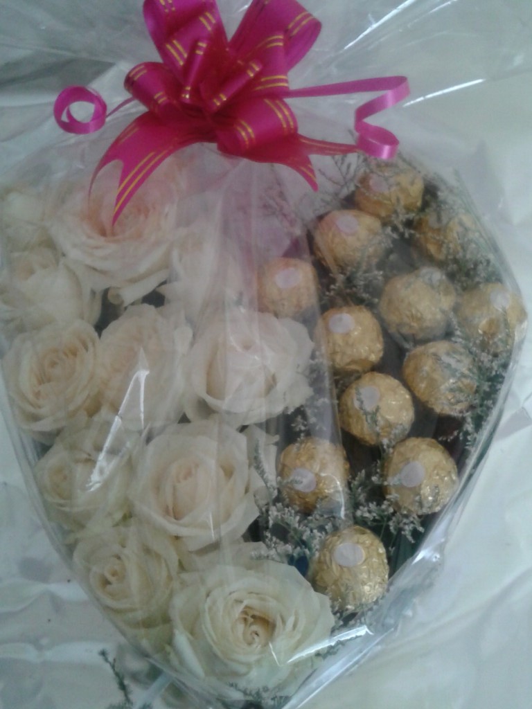 Corazon de rosas y ferrero.